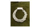 Biely dlhý opasok na viazanie s korálkovou aplikáciou. Opasok sa hodí k svadobným, ale aj spoločenským šatám.