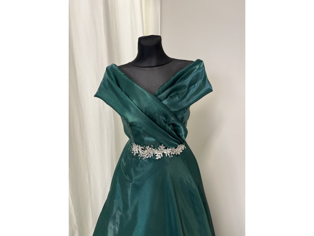 Luxusné spoločenské šaty sme ušili na túto plesovú sezónu pre jednu z Vás, ktorá chce byť v sále jedinečnou. Šaty majú korzetový vrchný diel so spadnutými pleciami, bohatú kruhovú sukňu. Zapínanie je vzadu na zips. Šaty sú doplnené o strieborný opasok. Možnosť zapožičania v salóne