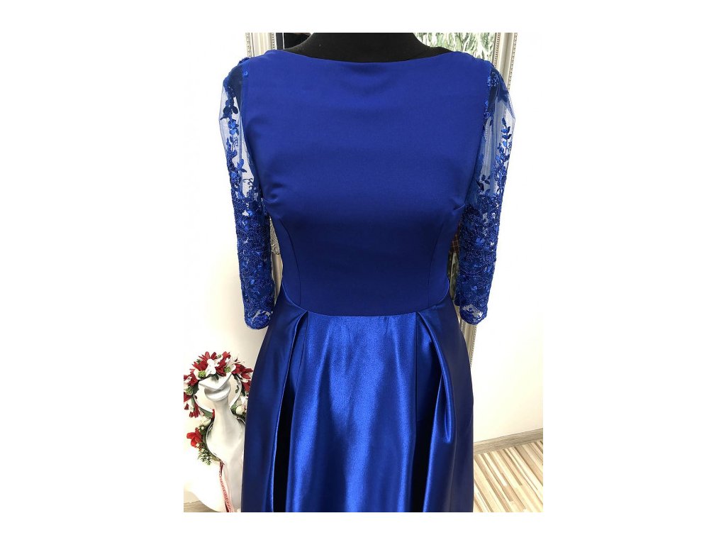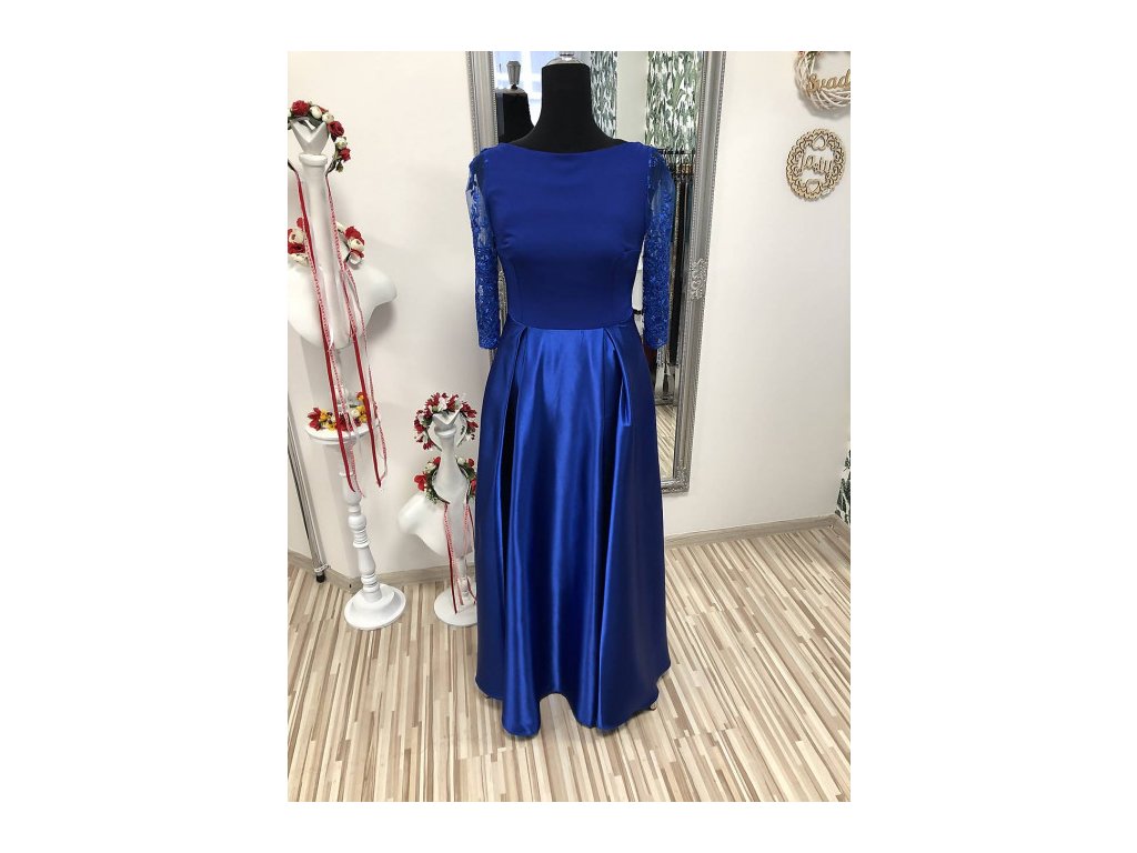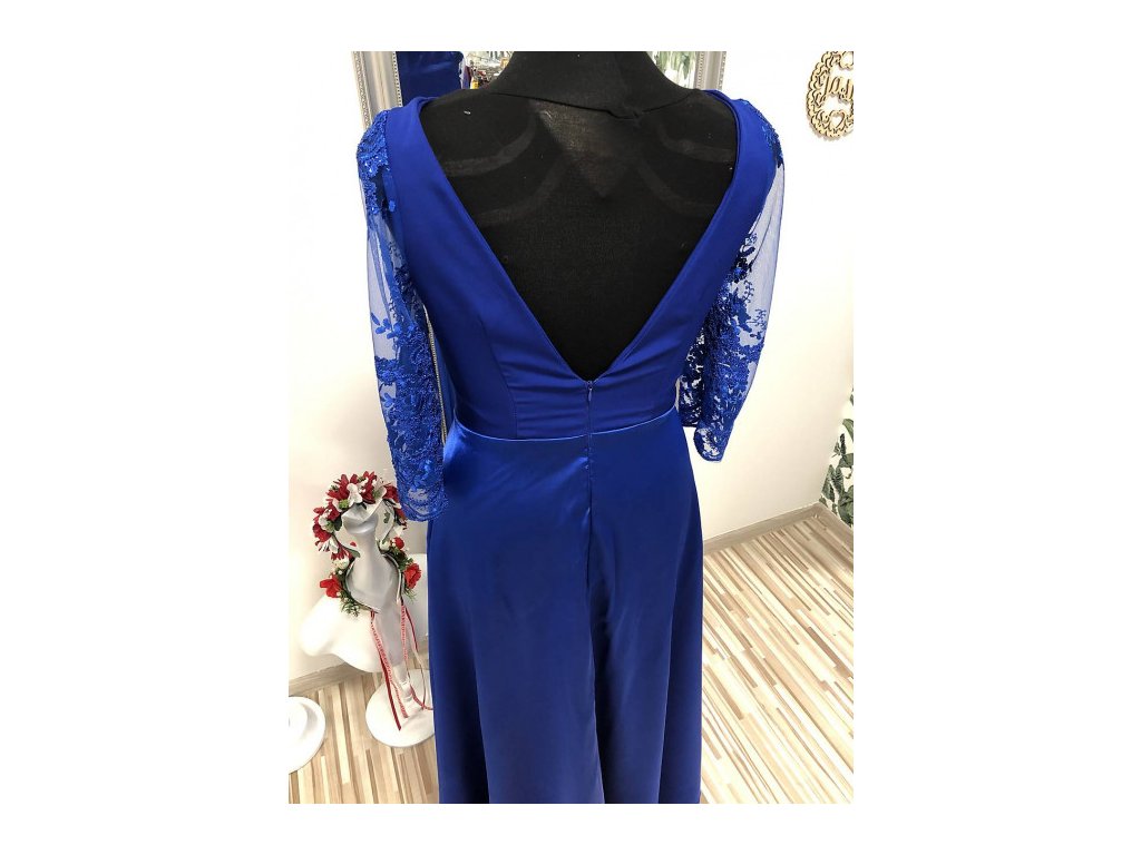 Kombinácia viacerých druhov materiálov, ako je satén a krajka dodávajú šatám luxus. Vrchný diel je z elastického materiálu, aby sa lepši prispôsobil postave. Skladom veľkosť 42