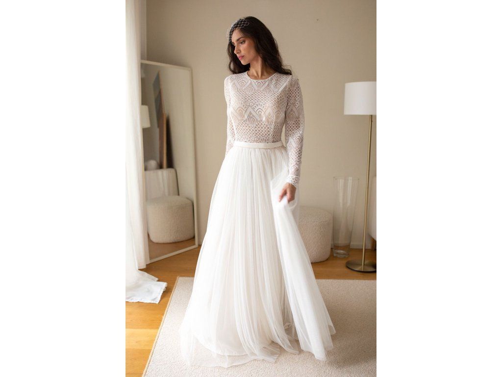 Svadobné šaty s geometrickou čipkou
